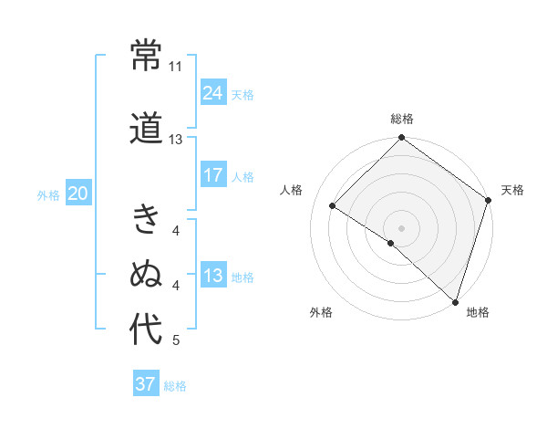 常道 きぬ代さんを姓名の画数から五運を鑑定