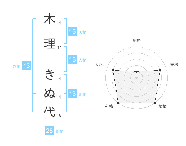木理 きぬ代さんを姓名の画数から五運を鑑定
