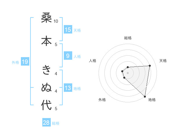桑本 きぬ代さんを姓名の画数から五運を鑑定