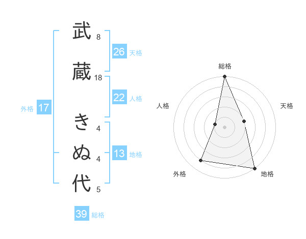 武蔵 きぬ代さんを姓名の画数から五運を鑑定