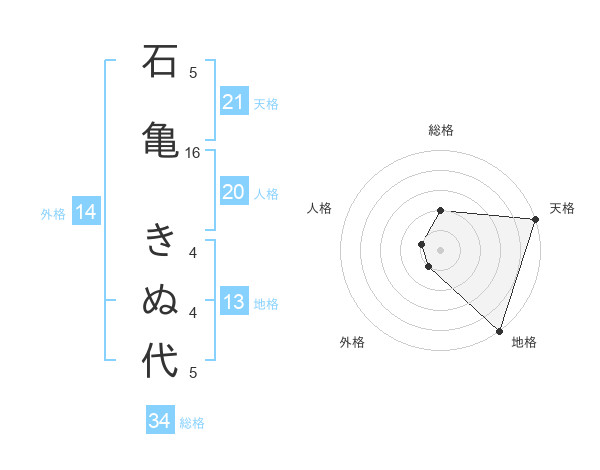 石亀 きぬ代さんを姓名の画数から五運を鑑定
