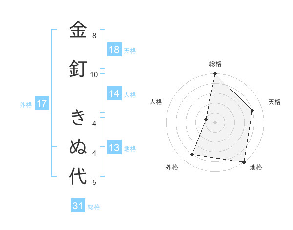金釘 きぬ代さんの総格は31画の5点!