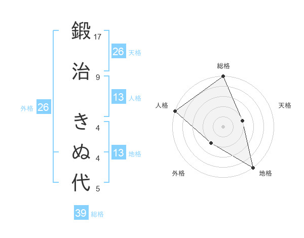 鍛治 きぬ代さんの総格は39画の5点!