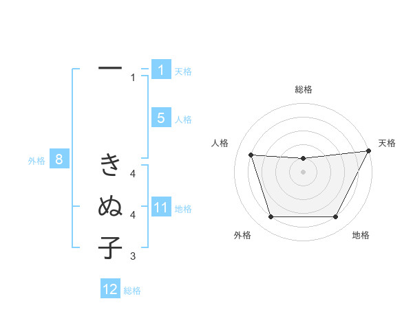 一 きぬ子さんの天格は1画の5点!