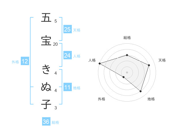 五宝 きぬ子さんを姓名の画数から五運を鑑定