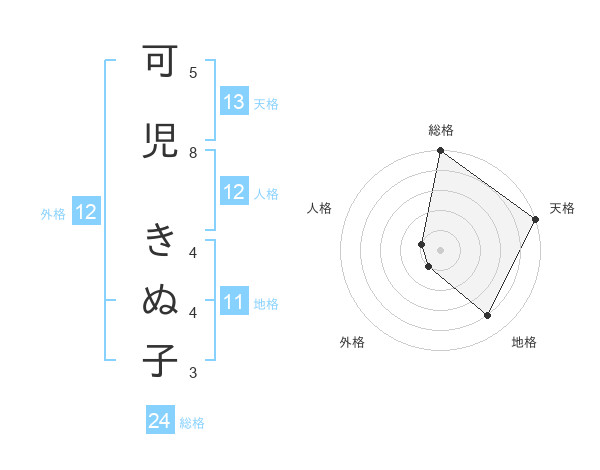 可児 きぬ子さんの外格は12画の1点!