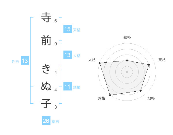 寺前 きぬ子さんを姓名の画数から五運を鑑定