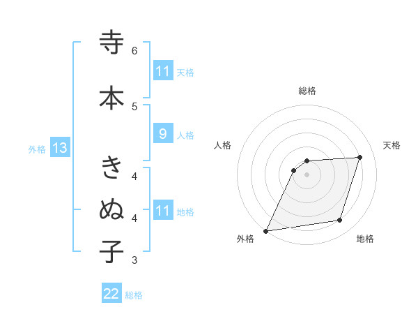 寺本 きぬ子さんを姓名の画数から五運を鑑定