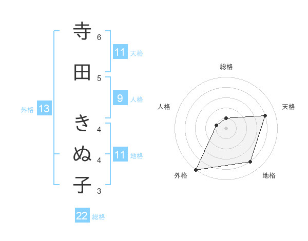 寺田 きぬ子さんを姓名の画数から五運を鑑定