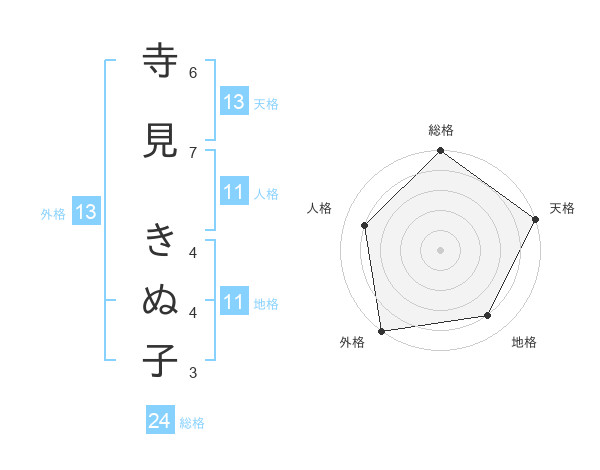 寺見 きぬ子さんを姓名の画数から五運を鑑定