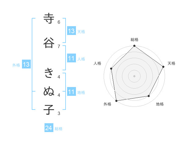 寺谷 きぬ子さんの外格は13画の5点!