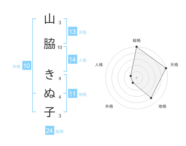山脇 きぬ子さんを姓名の画数から五運を鑑定