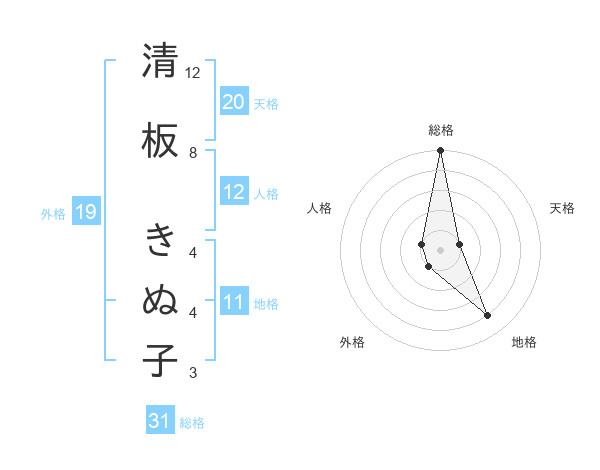清板 きぬ子さんの総格は31画の5点!