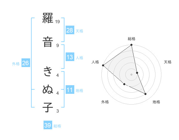 羅音 きぬ子さんを姓名の画数から五運を鑑定