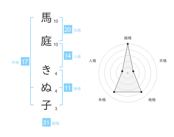 馬庭 きぬ子さんの外格は17画の4点!