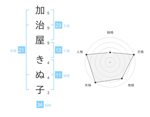 加治屋 きぬ子さんを姓名の画数から五運を鑑定