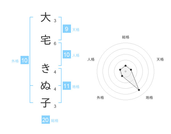 大宅 きぬ子さんを姓名の画数から五運を鑑定
