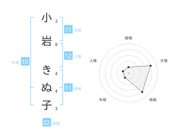 小岩 きぬ子さんを姓名の画数から五運を鑑定