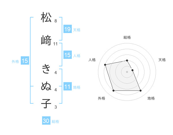 松﨑 きぬ子さんの総格は30画の2点!