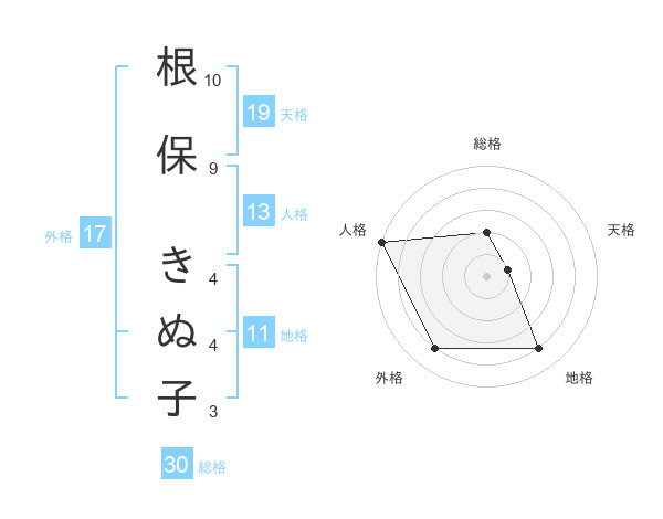 根保 きぬ子さんを姓名の画数から五運を鑑定