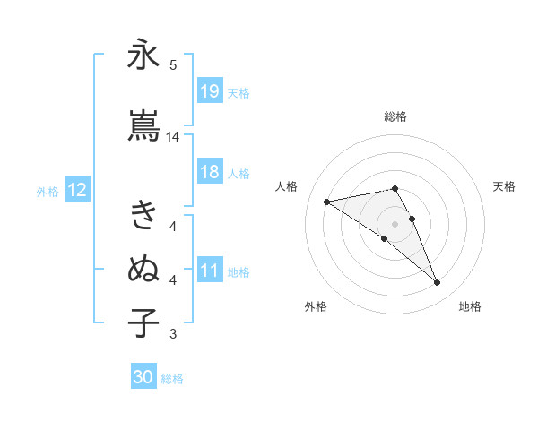永嶌 きぬ子さんの外格は12画の1点!