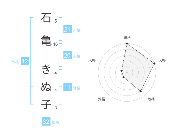 石亀 きぬ子さんを姓名の画数から五運を鑑定