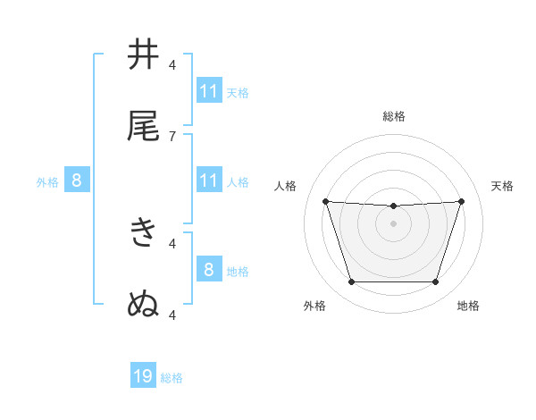 井尾 きぬさんを姓名の画数から五運を鑑定
