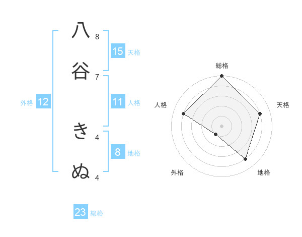 八谷 きぬさんの総格は23画の5点!