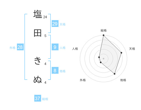 塩田 きぬさんを姓名の画数から五運を鑑定
