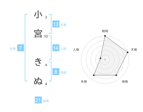 小宮 きぬさんの総格は21画の5点!