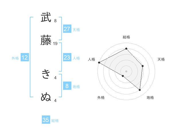 武藤 きぬさんを姓名の画数から五運を鑑定