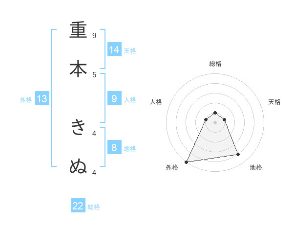 重本 きぬさんの外格は13画の5点!