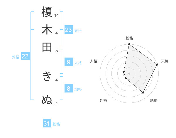 榎木田 きぬさんを姓名の画数から五運を鑑定