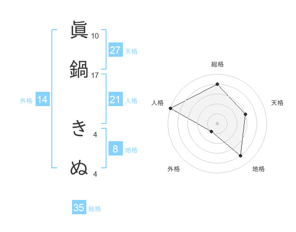 眞鍋 きぬさんを姓名の画数から五運を鑑定