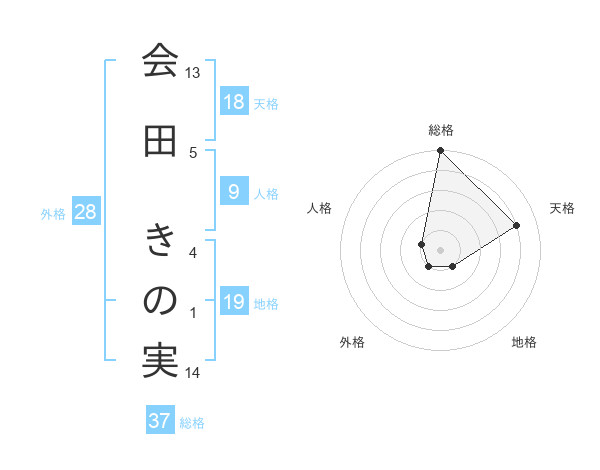 会田 きの実さんの総格は37画の5点!