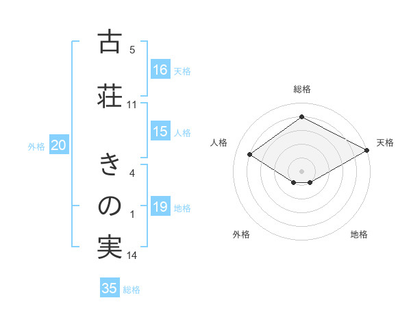 古荘 きの実さんを姓名の画数から五運を鑑定
