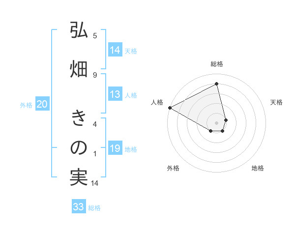 弘畑 きの実さんを姓名の画数から五運を鑑定