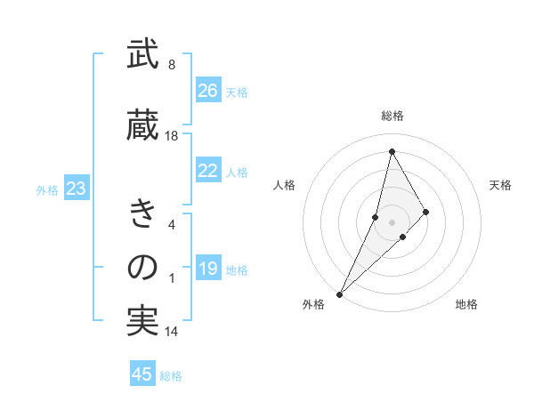 武蔵 きの実さんの総格は45画の4点!