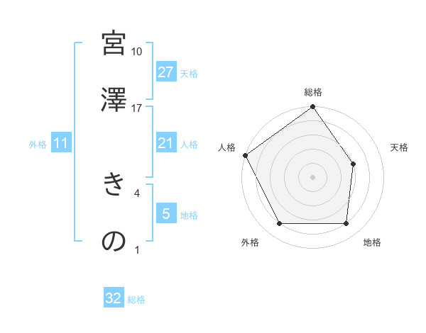 宮澤 きのさんを姓名の画数から五運を鑑定