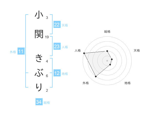 小関 きぶりさんを姓名の画数から五運を鑑定