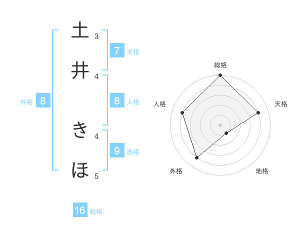 土井 きほさんの総格は16画の5点!