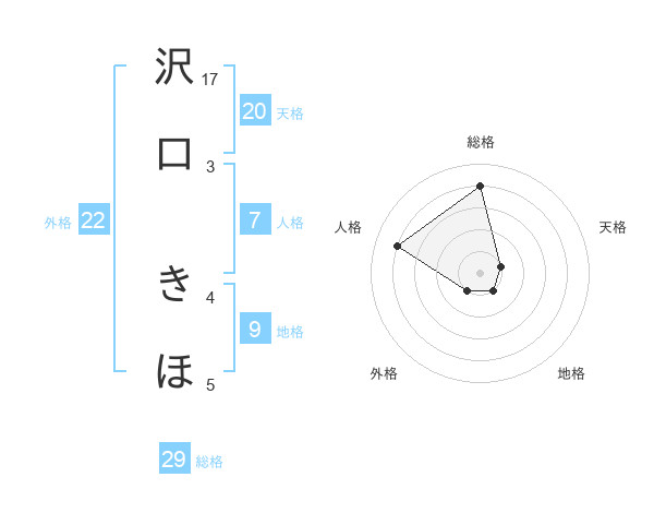 占い結果は姓名判断である以上、良い場合も悪い場合もありますが、決してお名前を誹謗中傷するものでなく、画数の自動計算によって得られたものです。また、本サイトの検索によって得られた鑑定結果で、第三者を誹謗中傷したり名誉を棄損するような行為を禁じます。
