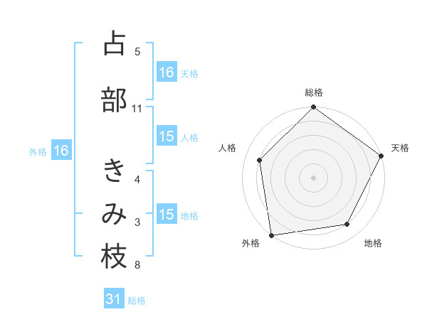 占部 きみ枝さんを姓名の画数から五運を鑑定
