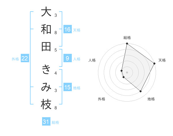 大和田 きみ枝さんを姓名の画数から五運を鑑定
