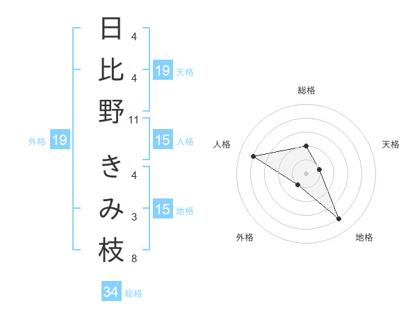 日比野 きみ枝さんを姓名の画数から五運を鑑定