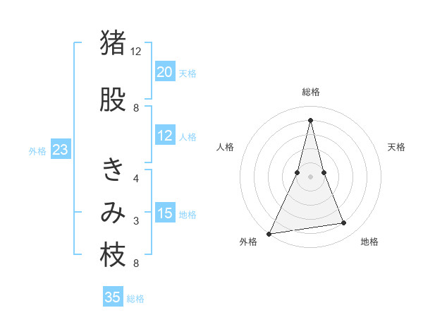 猪股 きみ枝さんを姓名の画数から五運を鑑定