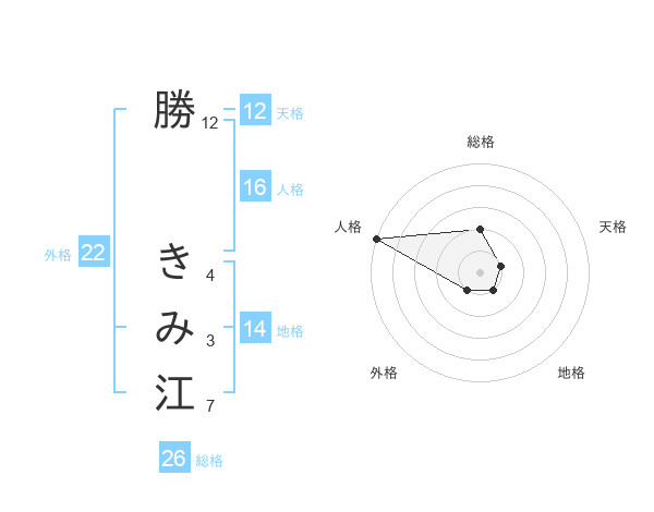 勝 きみ江さんの総格は26画の2点