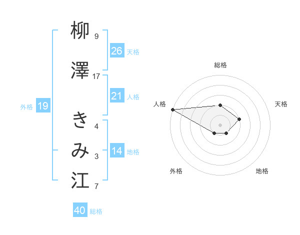 柳澤 きみ江さんの人格は21画の5点!