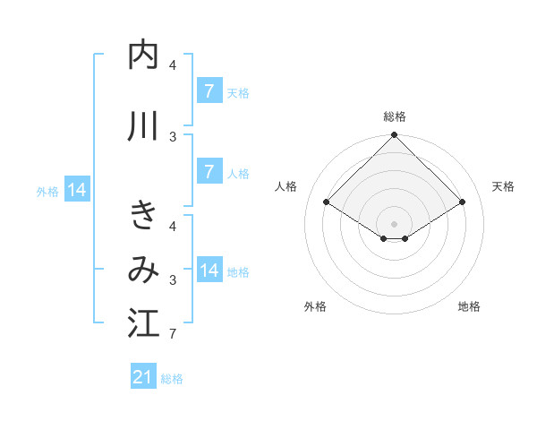 内川 きみ江さんを姓名の画数から五運を鑑定