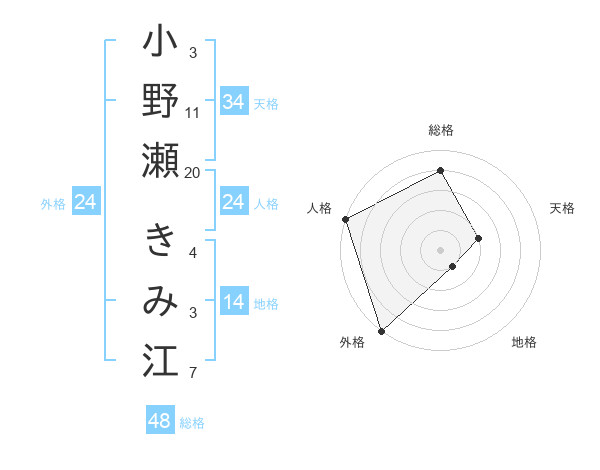 小野瀬 きみ江さんを姓名の画数から五運を鑑定